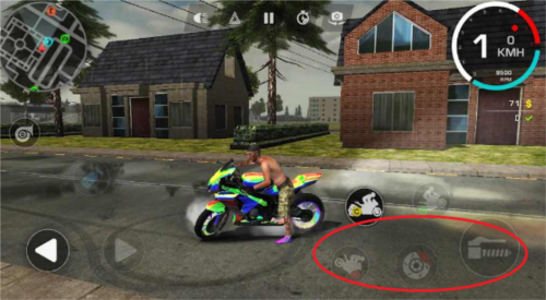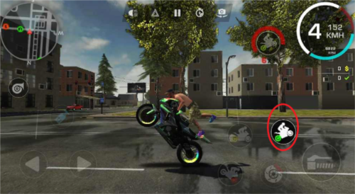 右边第二个动作是摩托车头翘起来,和驾驶一起按就是车头翘起前进的特技;