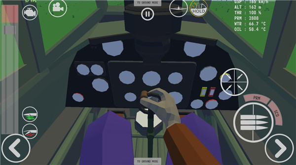 4、如图所示先点击点火按钮,然后飞机就会慢慢启动,玩家通过摆翼控制好飞机的方向,注意速度,左边是加速杆,加速过快容易飞机解体