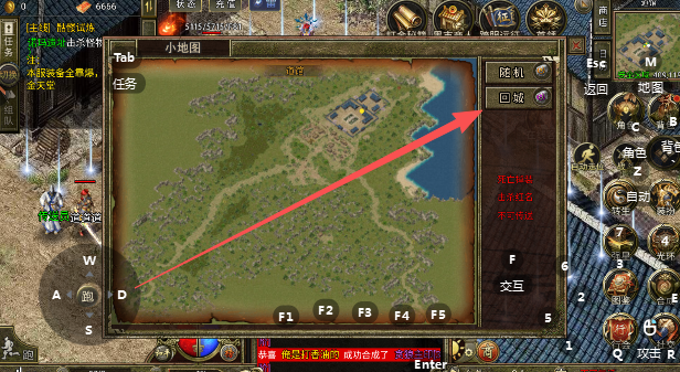 2、点击回城,可无距离限制立马回到初始点。