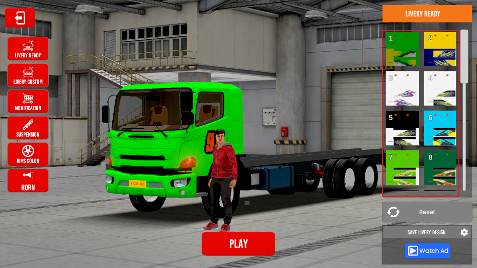 3.在右边选择车辆涂装后,点击play。