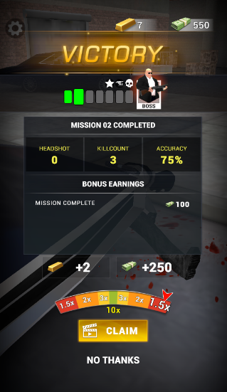 3、消灭所有目标即可获胜,通关后能获得钞票和金块奖励