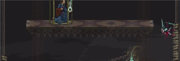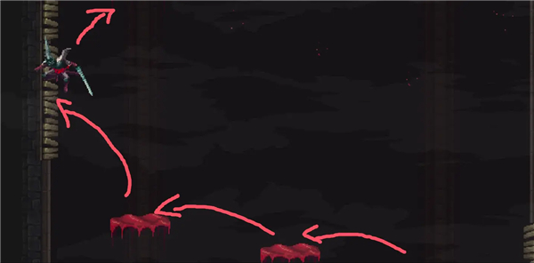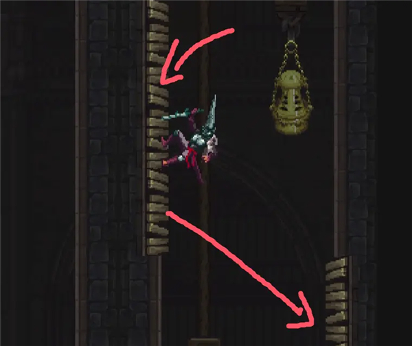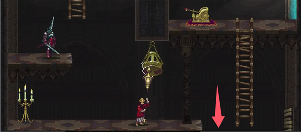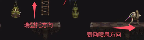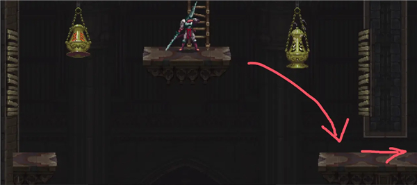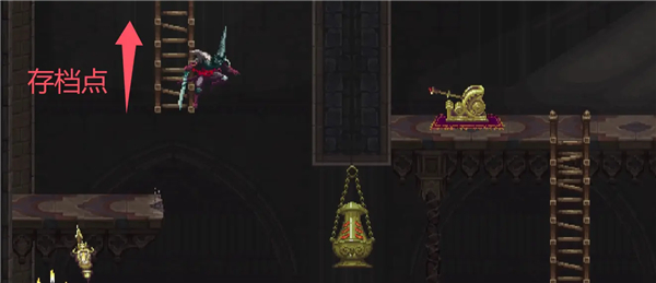 ②跳到香炉下面的平台上,然后跳去左边,开启回存档点的捷径。如果血量不够就回去存个档,但还是要回到捷径这里。