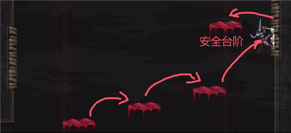 ④跳到尸体右边的平台上,开启回存档点的捷径。