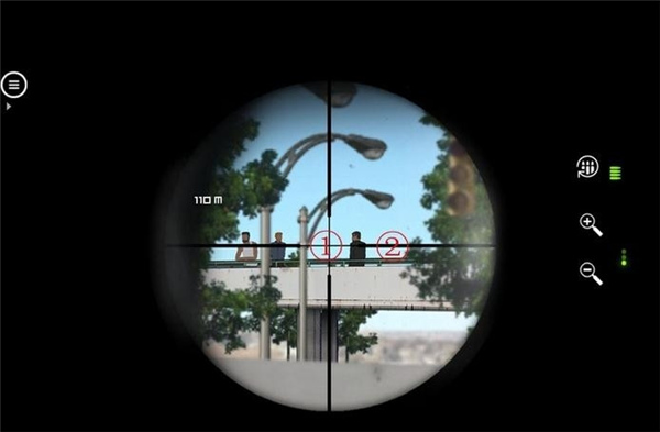 任务玩法:本关会引入一个新的道具装备——测距仪。测距仪安插在狙击枪的瞄准镜上,因为玩家与敌人的距离超过100米之后,射出的子弹会因为空气阻力的原因下坠。安装测距仪之后,绿点的位置才是正确的子弹射击部位。测距仪可以在道具商城中购买获得,价格不贵。