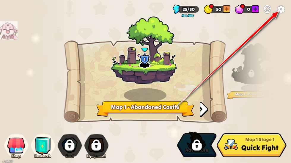 1、调中文需要先过完新手教程,然后在主界面点击右上角的齿轮进入设置