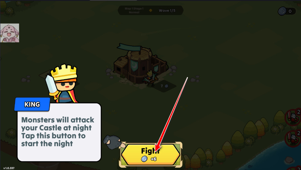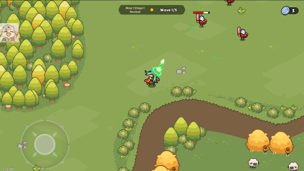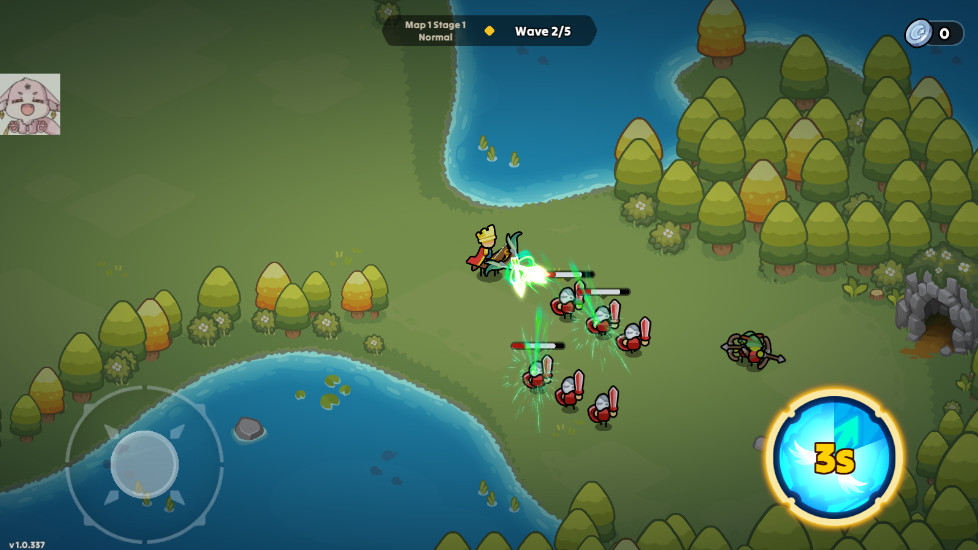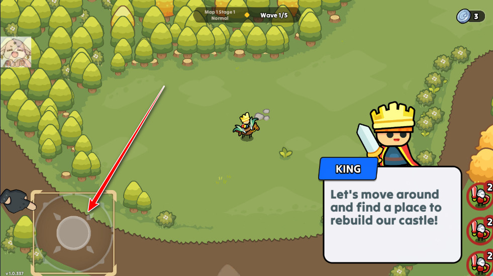 1、在本站下载安装并运行夜幕王国边境塔防,左下角的虚拟摇杆可以控制角色进行移动