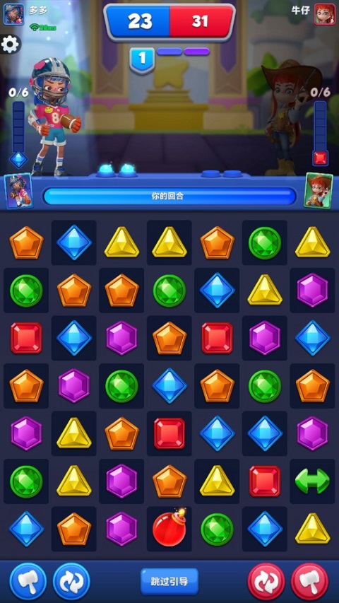 2、战略对战,宝石大乱斗游戏突显策略性,实时匹配真人对战,策略取胜。您需要巧妙运用策略,战胜对手,成为最终胜利者;