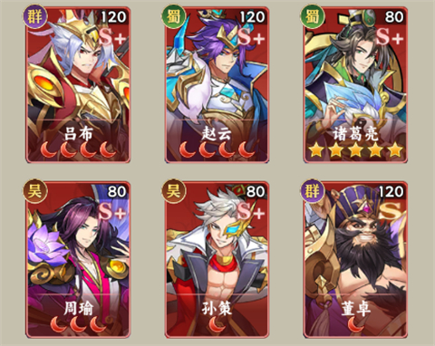 3、吕布+赵云+诸葛亮+周瑜+孙策+董卓