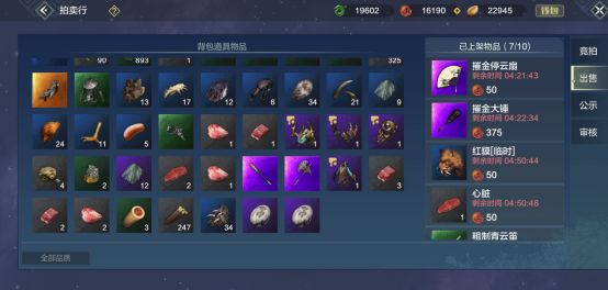 卖家可以将任何可流通的物品挂上拍卖行,但是每位旅者挂物品的上限是10件。