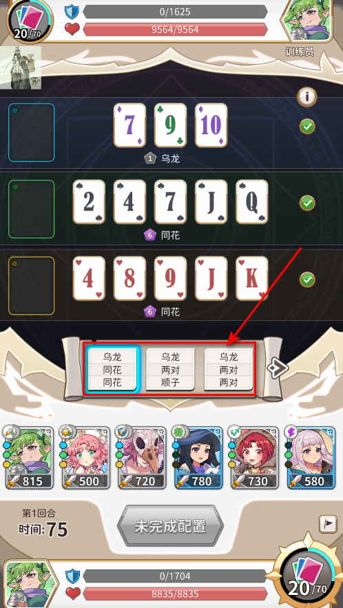 3、选好牌型之后,我们就需要选择角色了,有些角色的技能是有条件的,大家一定要仔细的观看。