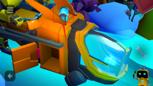 11、驾驶员身上的背包就可以打开,将我们找到的能量球放入