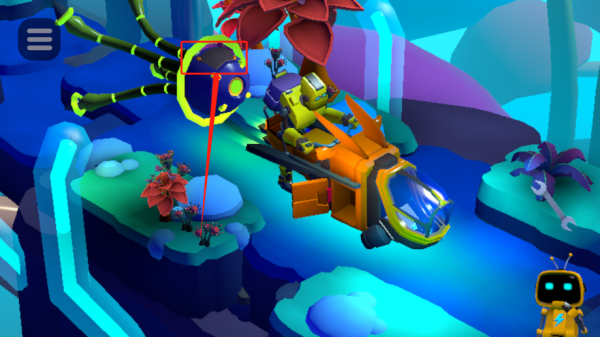17、回到上一游戏页面会发现机械水母此时出现故障,点击水母的中控,会出现下图,点击图示球体