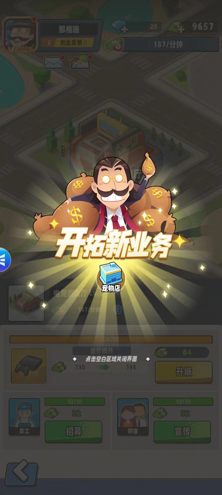 4、当达到一定的等级时,可以开拓新的业务;