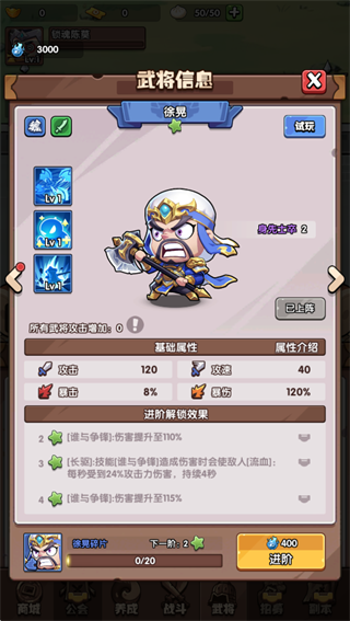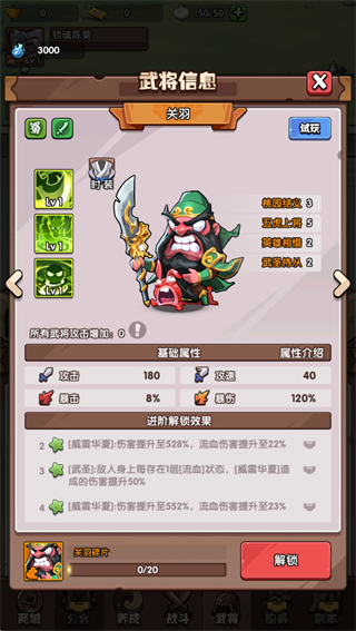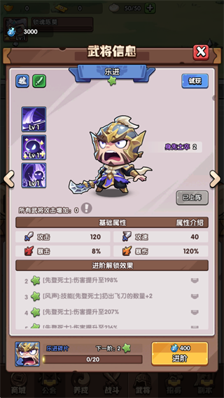 3、每位将军都有独特的技能和成长路径,玩家可以定制专属训练计划,释放将军的最大战斗潜力!