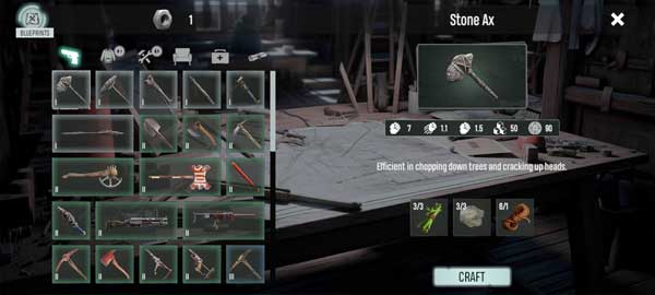 6、选择需要锻造的装备或工具后,点击右下角的“CRAFT”按钮,完成制作过程。
