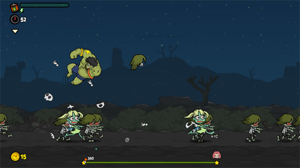 3、发射角色后点击屏幕可以让角色下砸,触碰到某些特殊僵尸会获得碎片奖励和特殊效果。