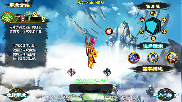 4、巫皇:远程巫术和毒攻击职业,以强大的控制能力和高闪避为特点。职业特色技能“凌霜”可降低目标移动速度数秒,“反噬”技能则能在对目标造成伤害的同时,转化部分伤害为自身气血,提高生存能力。