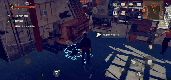 2、玩家首先需接取第一天的任务,游戏采用横版操作,屏幕左边控制移动,右边则是攻击、跳跃等键位;