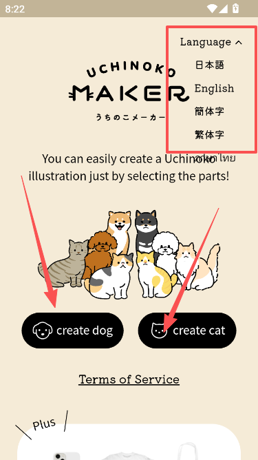 1、uchinoko maker游戏主要是用于模拟生成猫猫狗狗的图案。