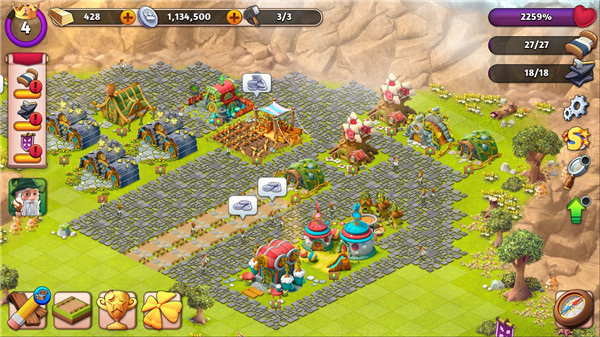通过拖拽、放置等简单操作,规划城市布局,将荒岛逐步发展为中世纪城镇。