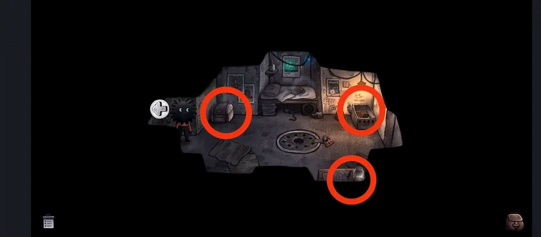 右走下方收物箱左用磁铁吸钢珠,回大房间钢珠撒楼梯上,打开收音机,躲进方型圆镜的柜子里等人进来,进新场景