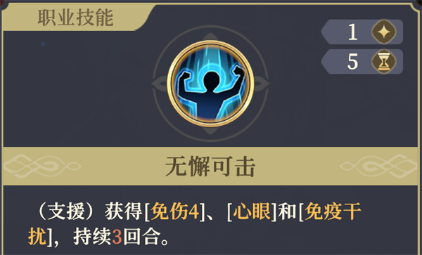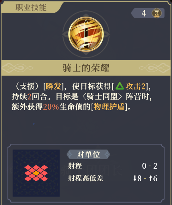 骑士同盟阵营的常见技能,作为瞬发的辅助技能,偶尔可能有上场机会。