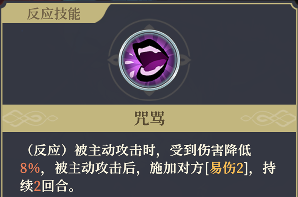 常见的反应,平平无奇,但对于帕西法尔而言,带这个反应就不会触发反击,从而让[咒痕]层数的消耗更加可控。
