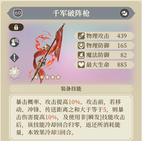 配合专武”法夫纳“,帕西法尔的移动力为5格,刚好可以触发千军破阵枪。