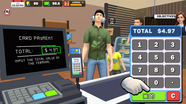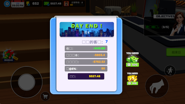 收银员:负责收银台工作,最多可雇佣4名,需满足等级和收银笔数条件。