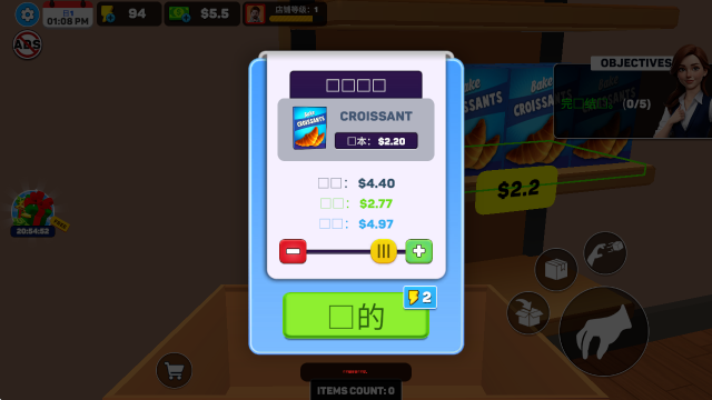 面包超市模拟器是一款以模拟经营面包店为核心的手游,玩家将扮演面包店店长,从采购原料、制作面包到管理店铺、服务顾客,全程体验经营一家面包店的完整流程。游戏采用3D卡通画风,画面温馨治愈,操作简单易上手,适合所有年龄段的玩家。玩家需通过合理规划店铺布局、调整商品价格、招募员工等策略,提升店铺盈利能力,逐步打造属于自己的面包帝国,玩家需要通过电脑下单购买面粉、酵母、糖等基础材料,选择价格合适、销量好的商品,避免库存积压,根据成本和市场需求调整价格,吸引更多顾客消费,手动为顾客结算,支持现金找零或信用卡支付,体验真实收银流程。