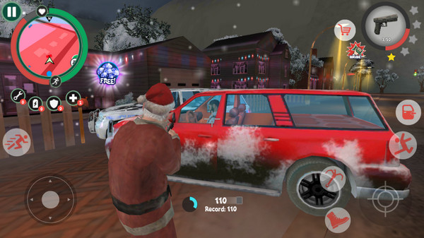 犯罪的桑塔是一款自由犯罪角色扮演游戏,英文名:Crime Santa。你要在游戏中扮演一个名为桑塔的古怪圣诞老人,他行走在法律边缘,不给人们送礼物,只想在小镇上开最疯狂的圣诞派对!游戏开始后玩家将作为圣诞老人前往一座被暴风雪封锁的小镇,在这里,你可以肆意破坏建筑、攻击路人,靠着圣诞老人的身份做你想做的任何事情!