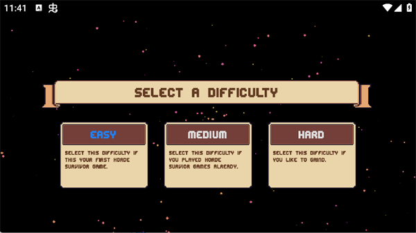 1、开始游戏前,先选择适合自己的难度,系统会根据选择调整敌人和环境强度。