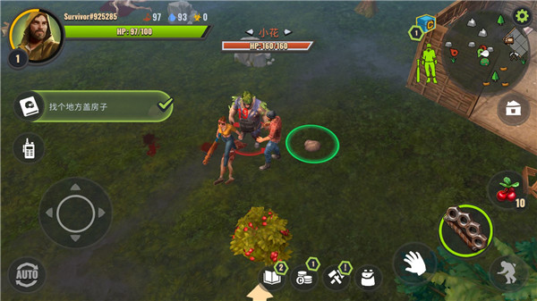 1、开局先捡点树枝,做个武器,先把家附近的丧尸清了!然后去车上拿把刀,再造几块地板放地上,(系统任务,不造你出不了地图)出去地图,左边右边各有一片地,左边的是石头地,右边的是树林。去的右边,去转下,找到一个NPC,他会攻击你,把他杀了,然后把光他,然后尽量把自己的包包装满资源,回家!这时候你应该可以造储物箱了,造他3,4个,把背包的东西放里面。