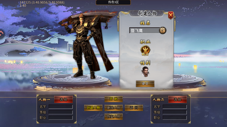 2.接着我们需要创建自己的角色,目前游戏只提供了战士一种职业