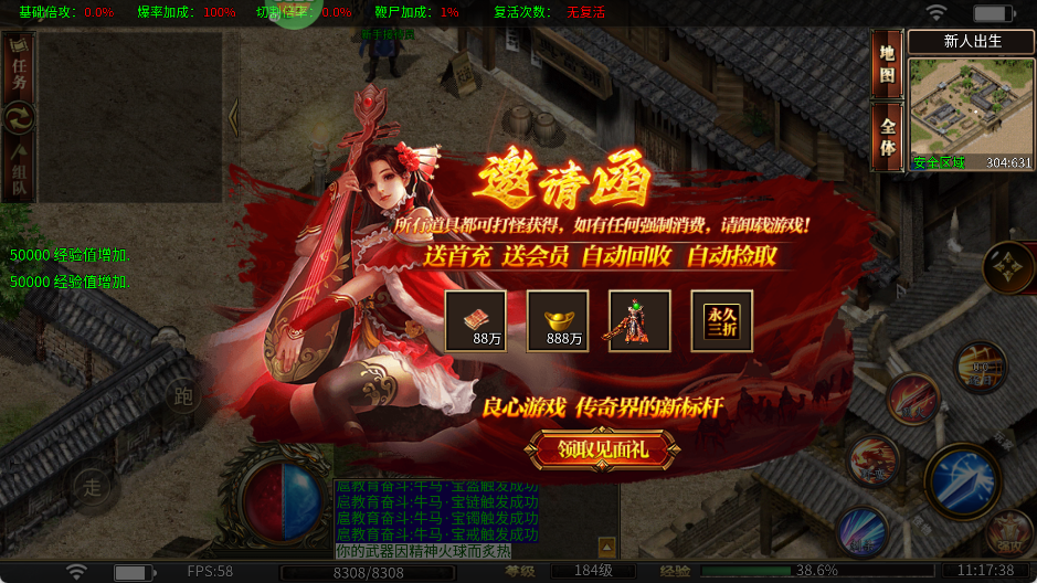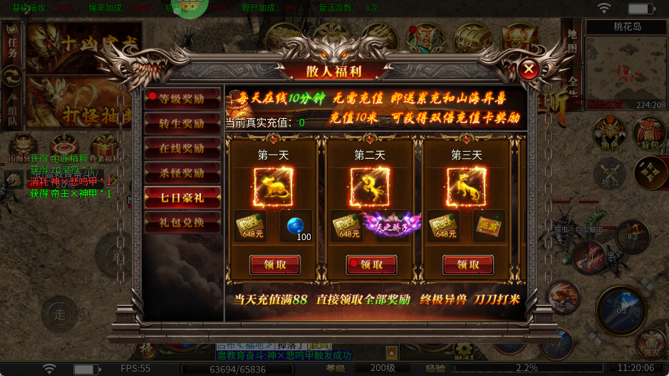 杀怪即可免费抽奖,真充、仙位、神装所有道具免费领!