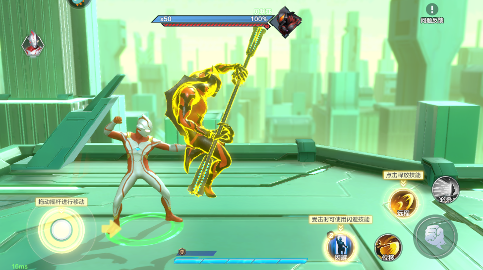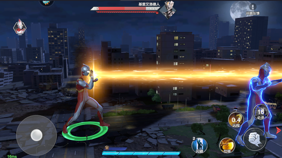 4.左侧的虚拟摇杆可以控制奥特曼移动,右侧的按钮可以释放技能
