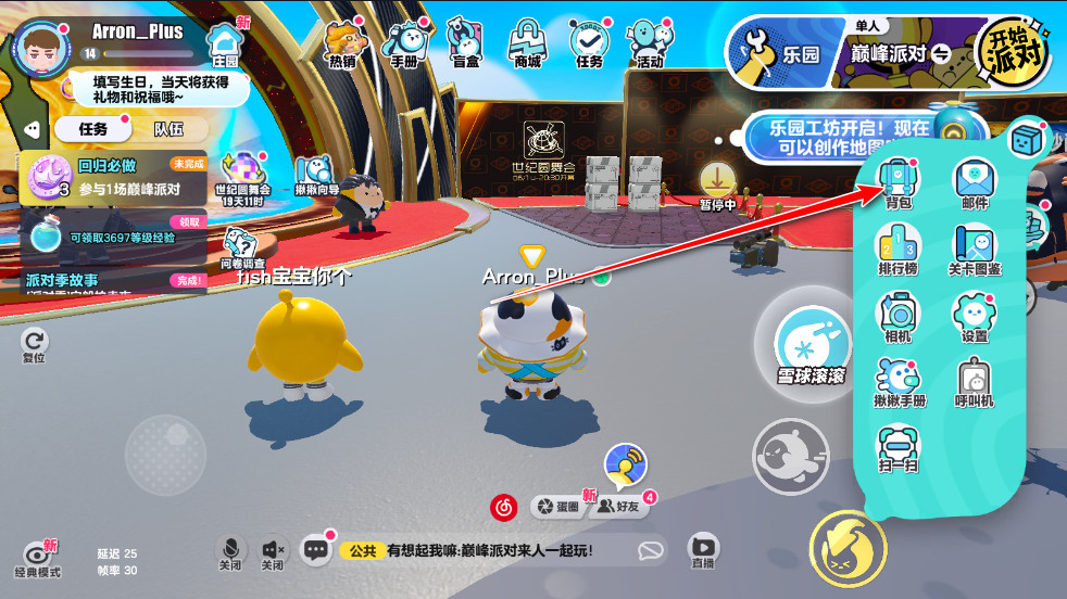 1.首先我们打开蛋仔派对,并进入到游戏中