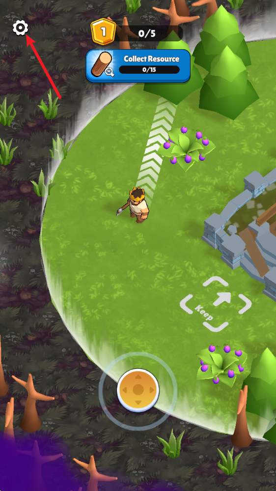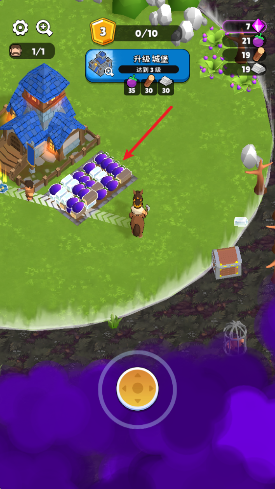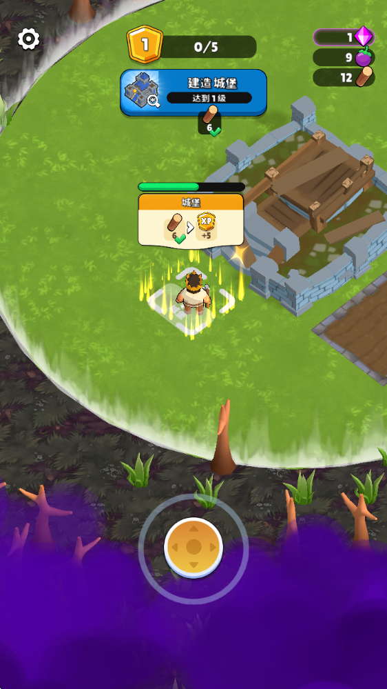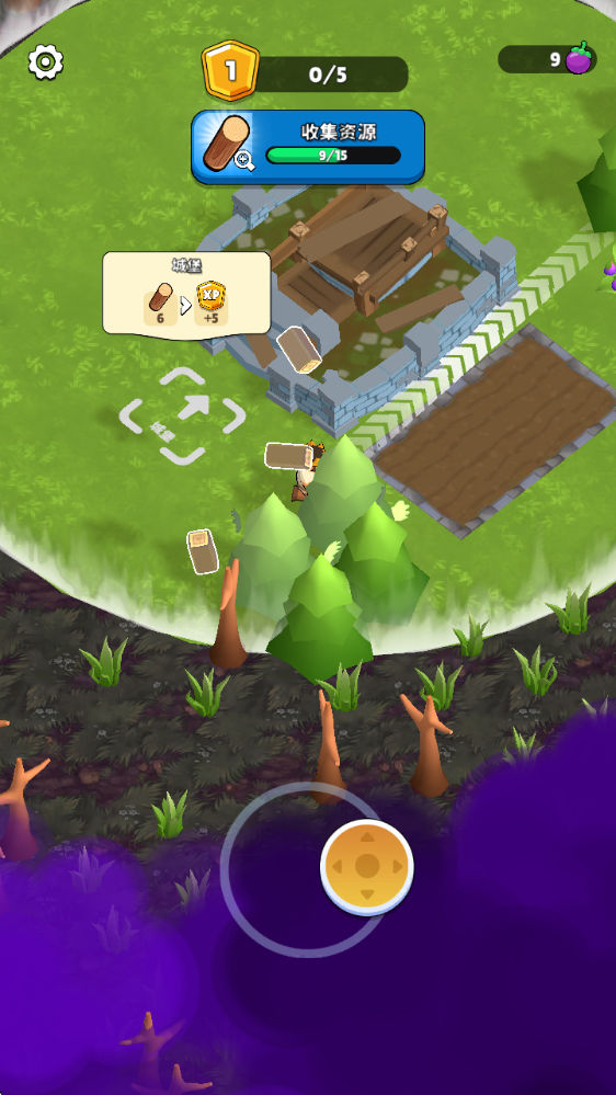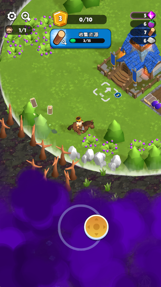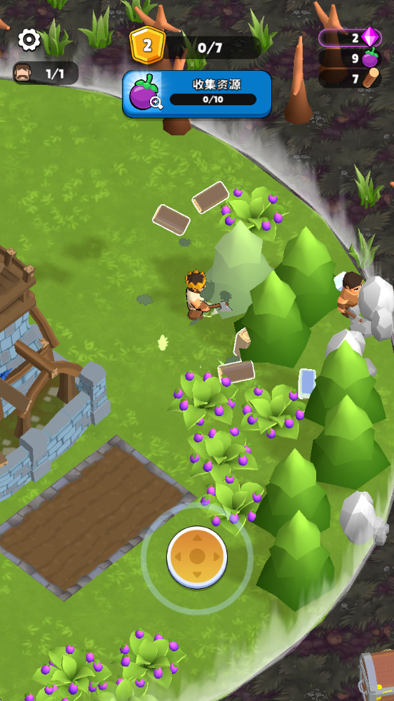 1、进入游戏后,拖动下方的摇杆即可移动,靠近资源即可进行采集。