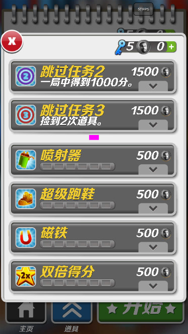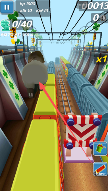 2、与原版地铁跑酷制作操作方式相同,通过向上跳跃、向下翻滚、左右躲避的方式完成跑路收集任务。