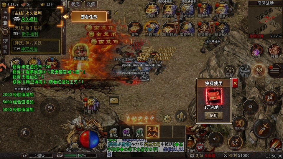 释放“大斩击”“毁天灭地”等强力攻击技能,适合贴脸战斗。