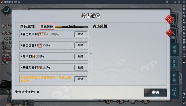 如果你这么大费干戈还没洗出来,不要着急,我们还能回炉一把,在合成内还有熔铸的选项,每次熔铸都能得到一个新的装备,而锻造次数也会补满。之后重复3~4就ok了