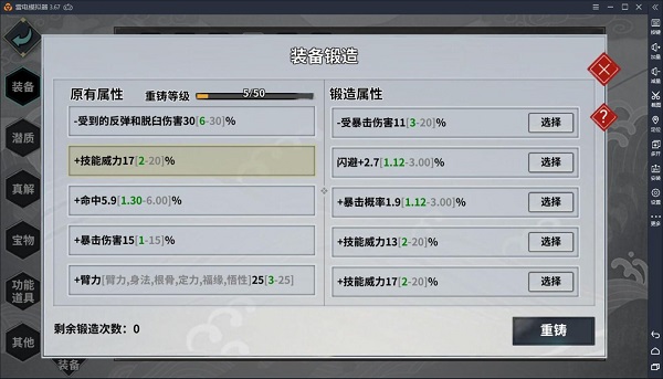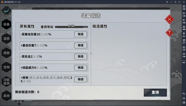重铸可以提高属性下限,增强装备的基础属性。每日8次重铸之后就开始收费了 ,最顶级的装备25元宝一次,低级一些的17元宝