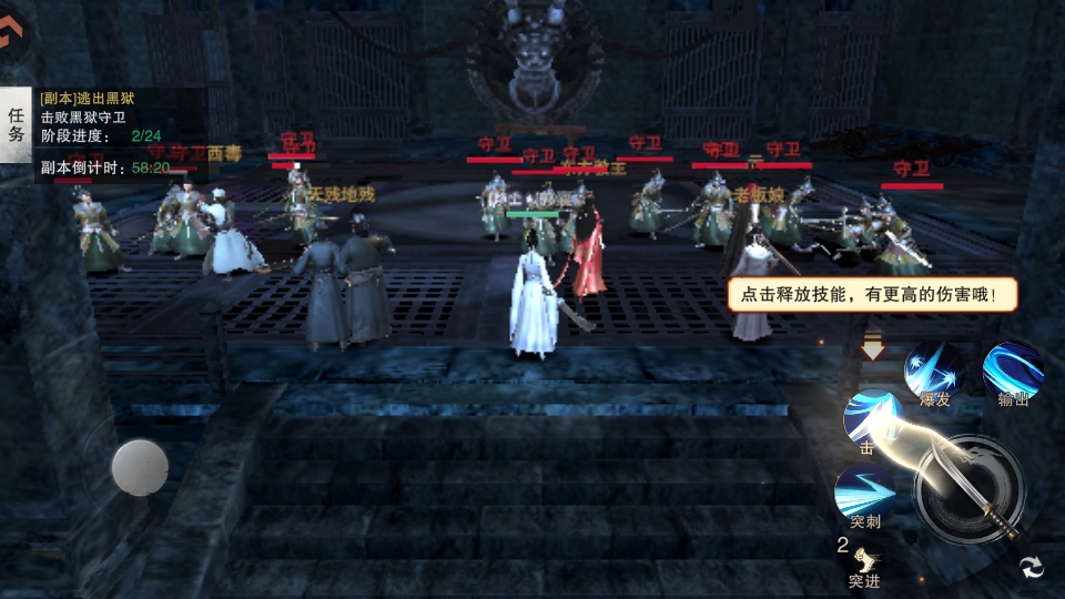 5.滑动左侧屏幕移动角色,右侧为攻击。