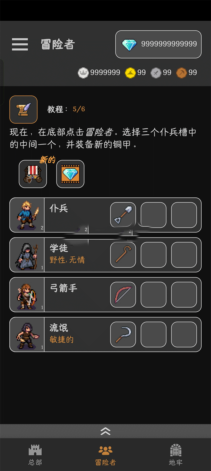 公会会长是一款像素角色扮演游戏,巧妙地结合了角色扮演、资源管理以及回合制战斗等多种元素,为玩家打造了一个沉浸式的冒险世界。在游戏中,玩家将扮演公会会长,负责招募、培养和管理一支由各种冒险者组成的公会,派遣成员进行地牢冒险,感兴趣的玩家快来下载游玩体验吧!