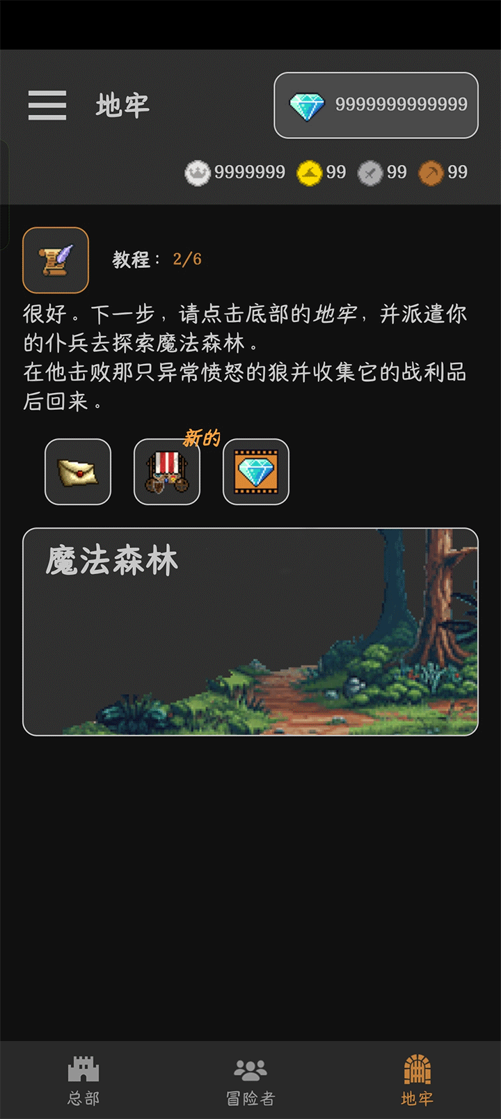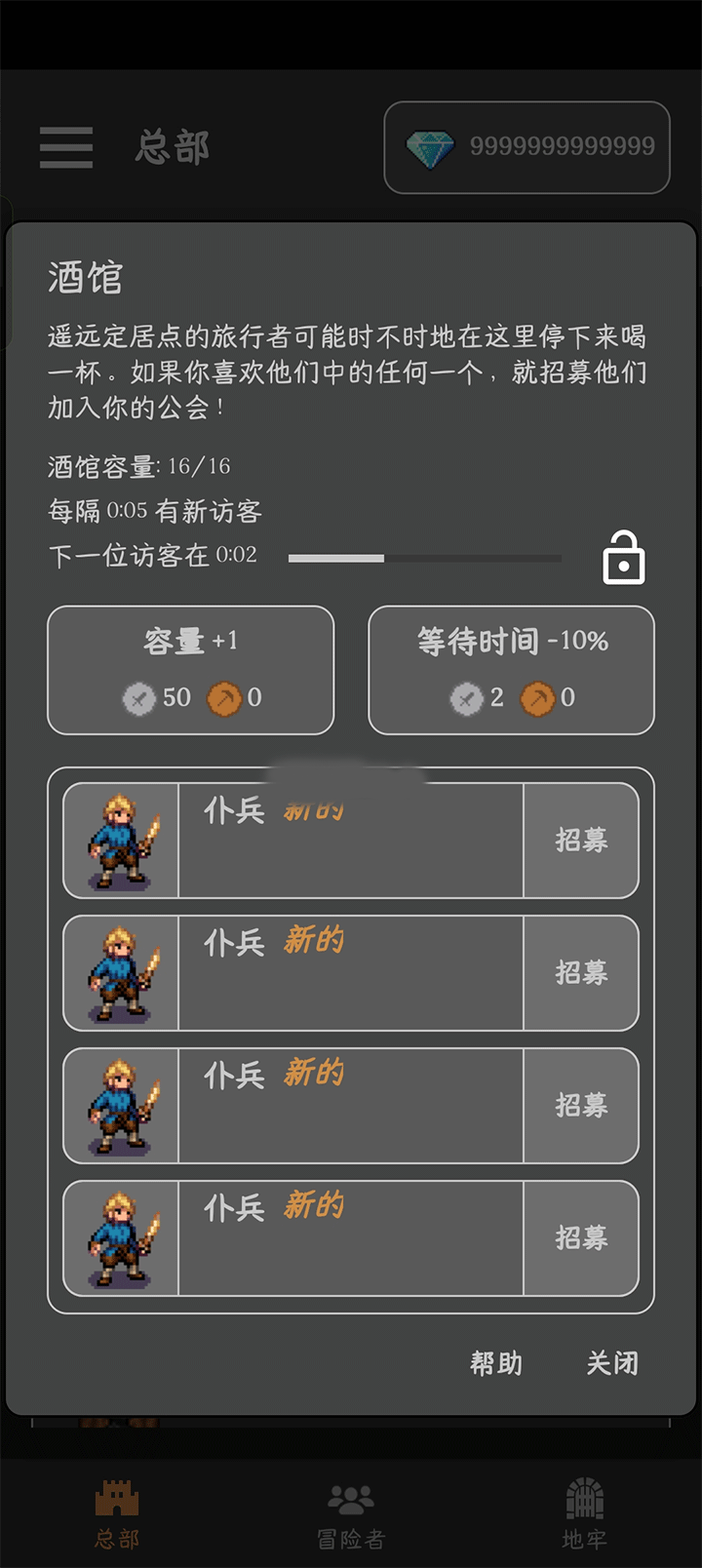 2、在这里你可以免费的去进行招募冒险者,简单的文字放置玩法等你来体验