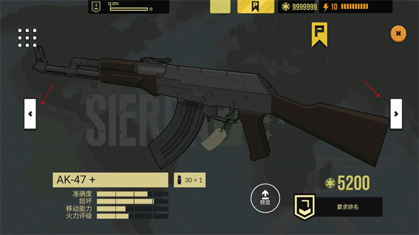 2、点击左右两侧的箭头就可以对枪械进行更改。