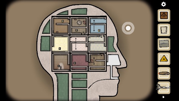 24、之后安排路线到达有水的房间,乘坐潜艇进入到红色的房间内,拉开房间内红色的帷幕,点击相框退出房间后将房间移到鼻腔处,接着进入房间,控制男主逃出