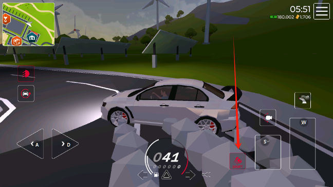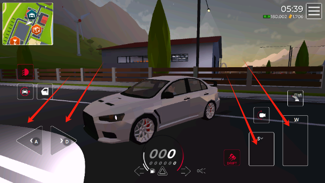 4、进入游戏之后,左右键控制方向,长踏板是油门,短踏板是刹车,手柄是手刹