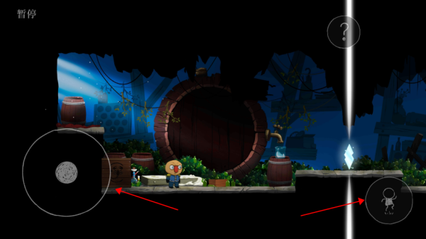 4、点击图示的操控盘,操控任务移动或跳跃