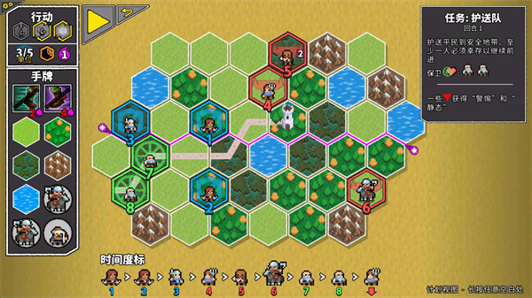 4、正式开始战斗后左侧是玩家可以使用的手牌,你的目标会在右上方显示,每回合可以使用两张卡牌。